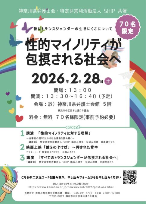 鏡をのぞけば~押された背中~ 2026.02.28 神奈川にて鏡をのぞけば~押された背中~上映会&アフタートークあります!2026.02.05「鏡をのぞけば 〜押された背中〜」が上映される事となりました。 神奈川弁護士会(@kanaben_info)・特定非営利活動法人SHIP(@SHIP_official)共催「性的マイノリティが包摂される社会へ」~特にトラ...